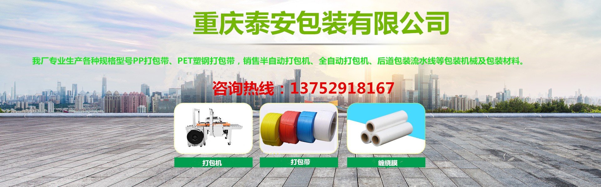 重慶泰安包裝有限公司(電話:13752918167)是專業(yè)生產(chǎn)各種打包帶、塑鋼帶、纏繞膜、膠帶,銷售打包機(jī)、纏繞機(jī)、封箱機(jī)、無人化流水線等各種包裝機(jī)械、包裝制品、包裝材料一體化的優(yōu)秀包裝企業(yè),始終堅(jiān)持“穩(wěn)步擴(kuò)張、精益管理”的方針,堅(jiān)持“換位思考,了解客戶需求,主動(dòng)服務(wù),超越客戶期待”的服務(wù)理念,以熱忱的服務(wù)、優(yōu)良的品質(zhì)、靈活的機(jī)制、創(chuàng)新的技術(shù),向各新老客戶提供最優(yōu)質(zhì)、優(yōu)價(jià)的產(chǎn)品和服務(wù),具有對(duì)系列產(chǎn)品自主研發(fā)創(chuàng)新能力,能夠獨(dú)立根據(jù)用戶要求制版打樣。近十年來受到廣大客戶的信任,產(chǎn)品銷售遍及全國各大城市,與客戶形成自由平等、互利互惠的戰(zhàn)略合作關(guān)系,平均年銷售量2000多噸。